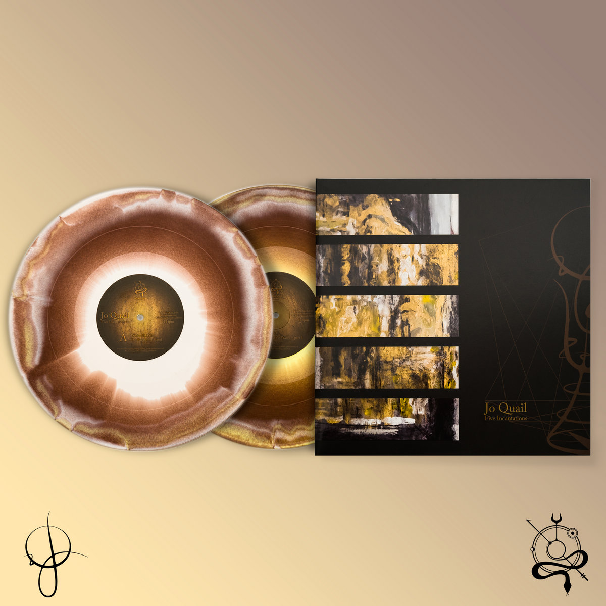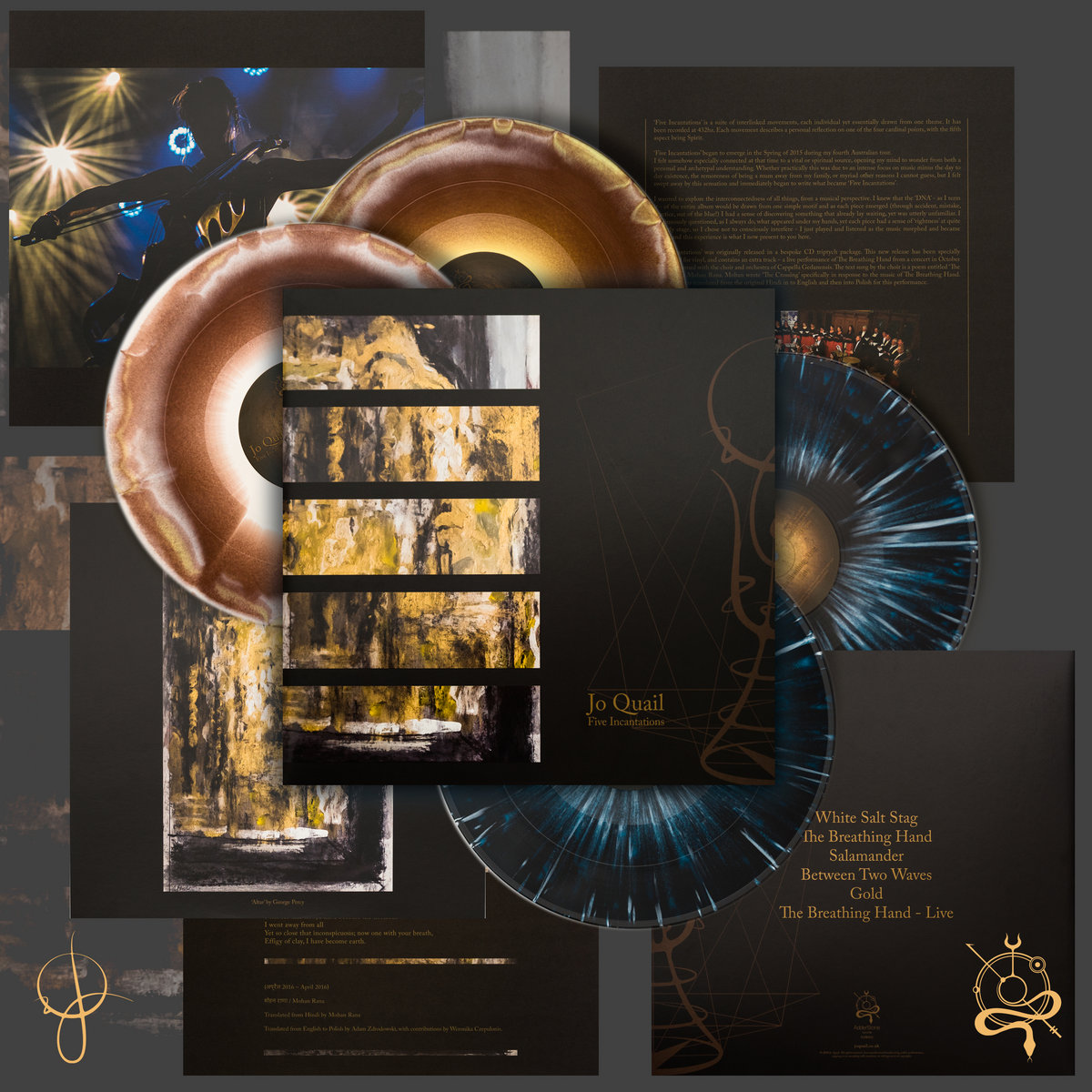 Double vinyl in stunning gatefold sleeve, in a choice of rich brown/gold/cream starburst of blue/black marble with white splatter. Includes inserts with photography, poetry, and original programme notes for the UK and Australian premiere of Five Incantations.